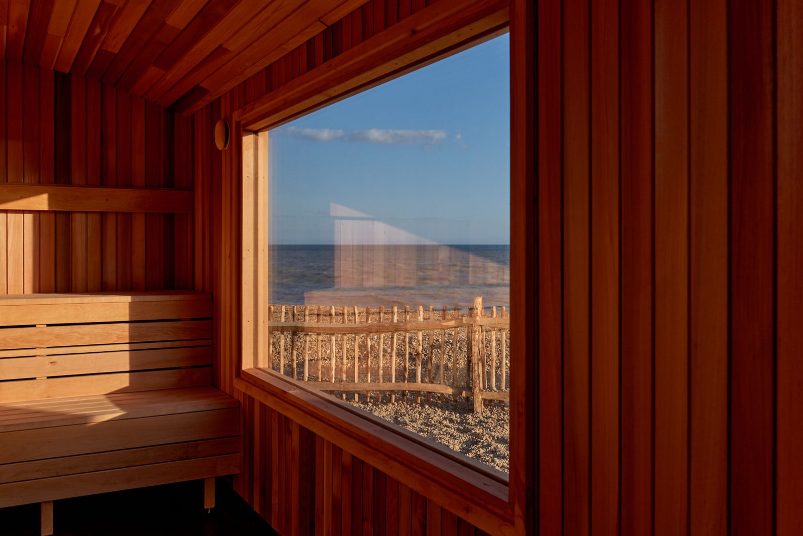 Built directly into the beach, this beachfront wellness oasis comprises of two saunas, two plunge pools, a hot tub, fire pit, café, community events space and a pair of bucket showers.