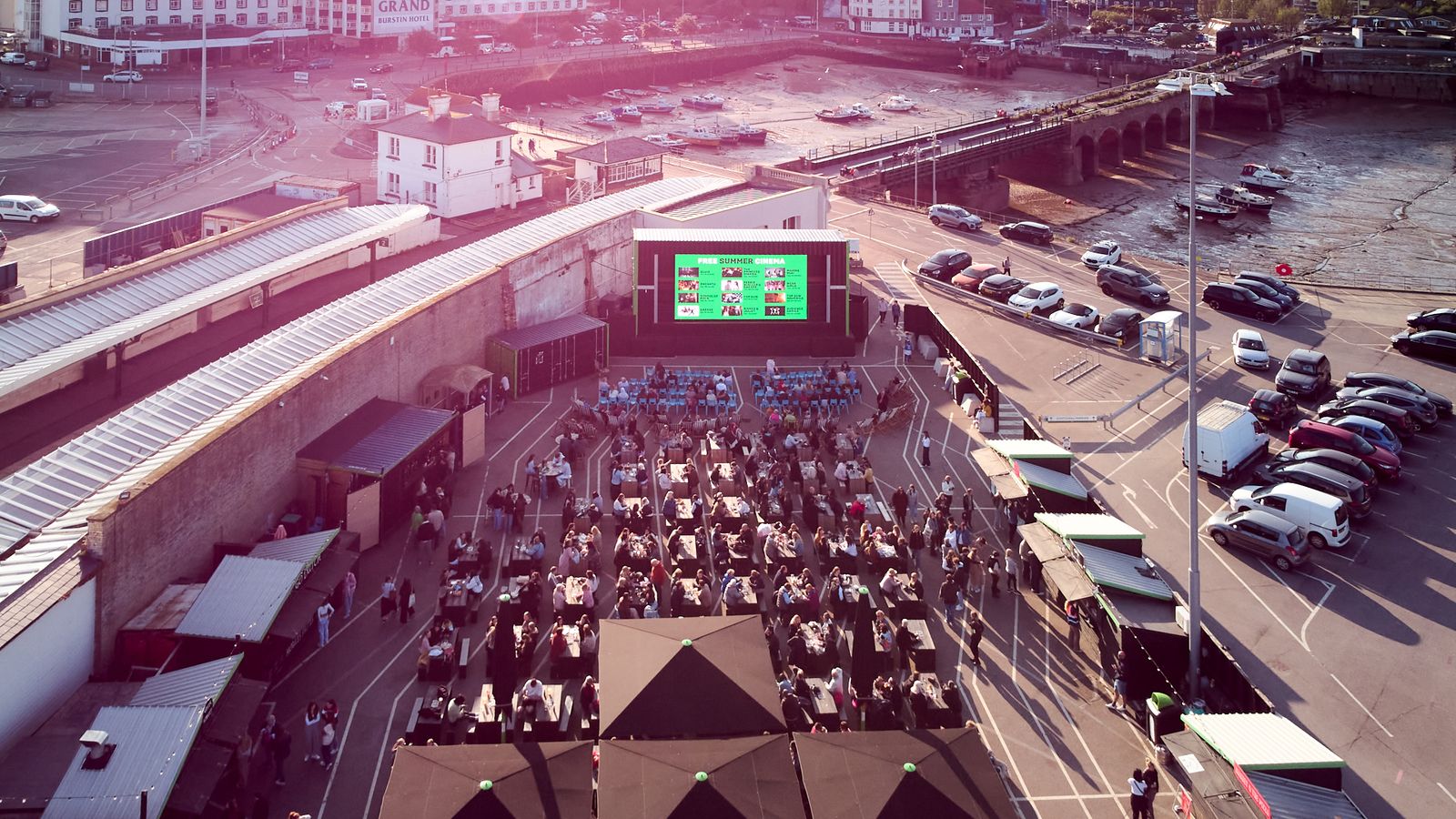“Enjoy a wide range of food and drinks in Folkestone Harbour Arm's Goods Yard, accompanied by our Harbour Screen.”